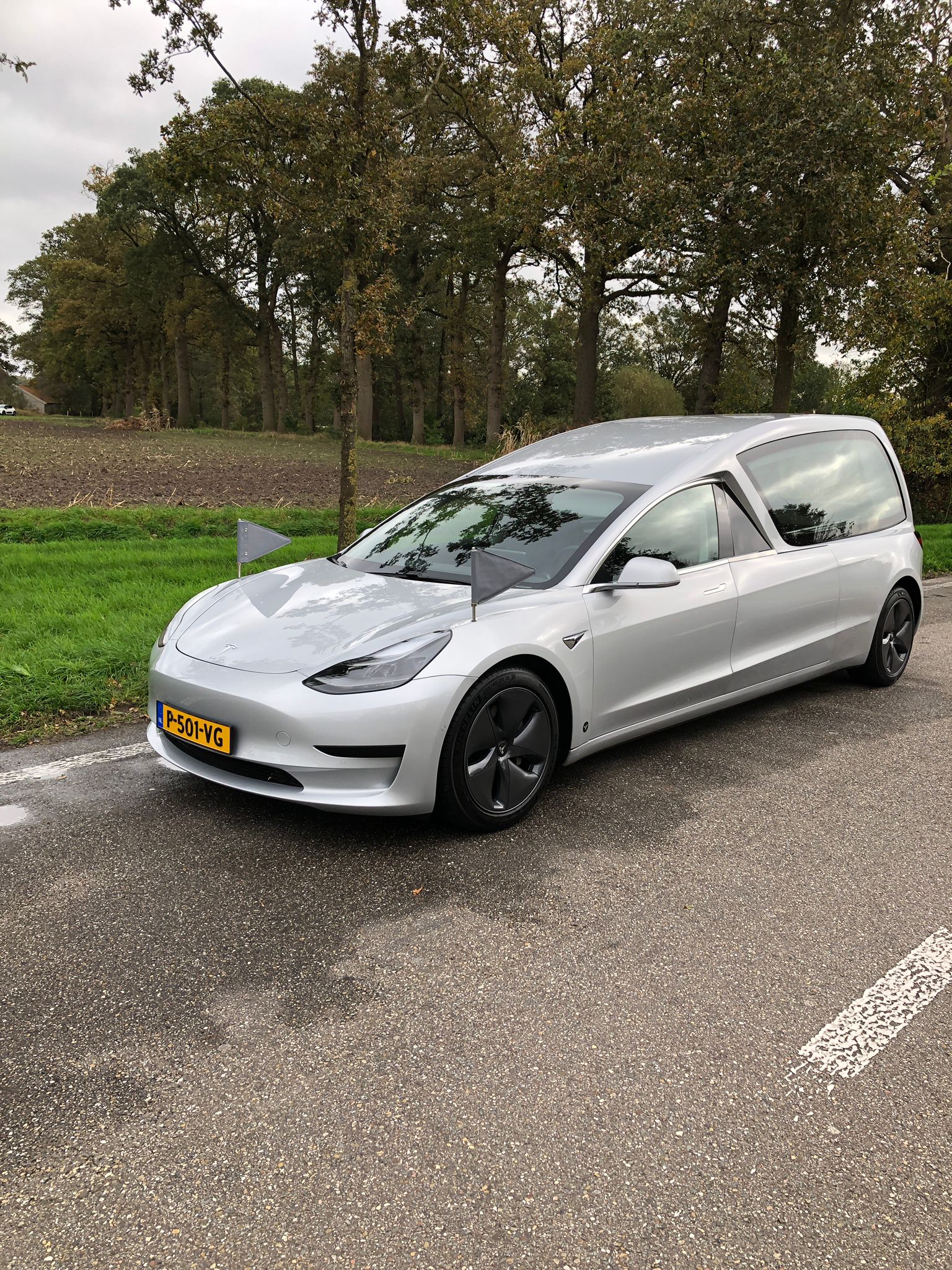 Tesla Model 3 Zilvergrijs Rouwauto